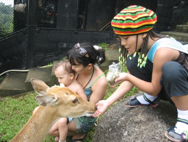 Обратите внимание на эту фотографию, на заднем плане сынок ест бананы, предназначенные для оленя :), бананы кстати хорошие, маленькие, съедобные.