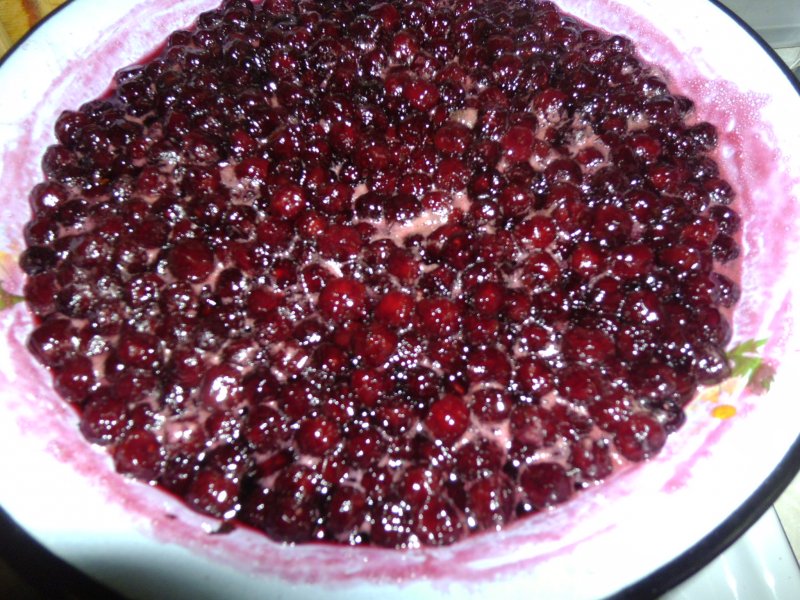 Я сегодня занималась вишней в сиропе. На 1л. воды - 0.8 кг сахара и 2 гвоздички.Сироп грела и заливала 2р. Потом закатала в 0.8л банки. И немного варенья