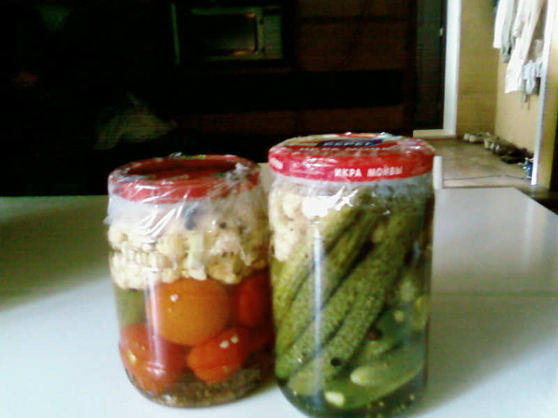 Засолила 4е 2х л банки ассорти - помидоры с огурцами. Рецепт такой как у Надежды, только соли кладу 1ст.л. на 2литровую банку и без водки.Сейчас отдохну и вторую порцию баклажан пойду делать. :varim: