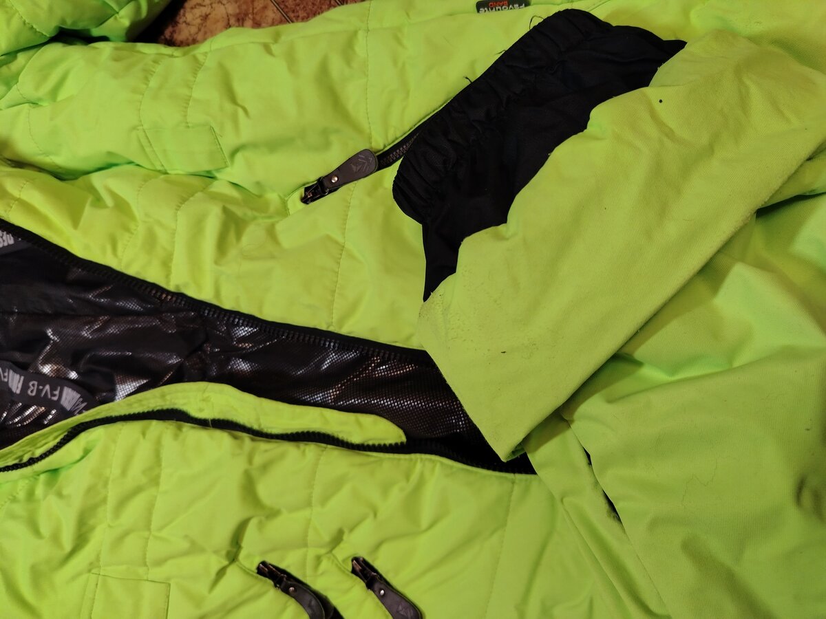 На ткани одежды нанесено двухкратное покрытие Teflon, которое отбрасывает воду и грязь, препятствует проникновению микрочастиц пыли в структуру ткани и обеспечивает высокое скольжение при трении, вот почему эту одежду можно использовать для катания на горках даже без ледянки.