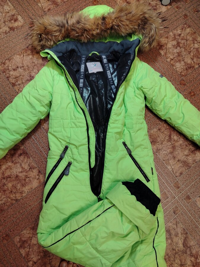 Продам зимние комбинезоны. Яркий лаймовый цвет. Унисекс. Лёгкий, тёплый, любимый р. 134 -140. Опушка отстегивается и капюшон. Цена 2000. Ношен, есть потертости.