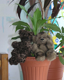 В семье остались,только меховые Тяпы-супруги,муж считает их своими и Алеша считает своими,сейчас они сидят рядом с компьютером,давно уже.Раньше ими играли.Фиолетовая Тяпа поселилась у соседки.Она была сшита.Оранжевый уехал в кемеровскую область к племяшке-этот связан крючком.У белого судьба сложилась трагически,пал смертью храбрых во время делёжки,восстановлению не подлежал .Зтот был пошит из кофты,которую мне купил-подарил муж в короткий промежуток-ухаживание.
