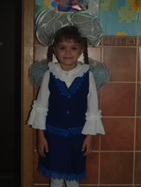 Наташе форма в школу,в первый класс.Цвет учительница выбрала не очень удачно,фото не передает.Только у всего класса форма из трикотажа шерстяного.Руками я его потрогала и решила сшить сама.На первое сентября весь класс изнывал от жары,а мы нет.