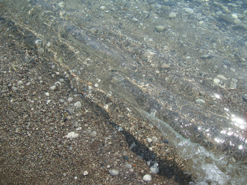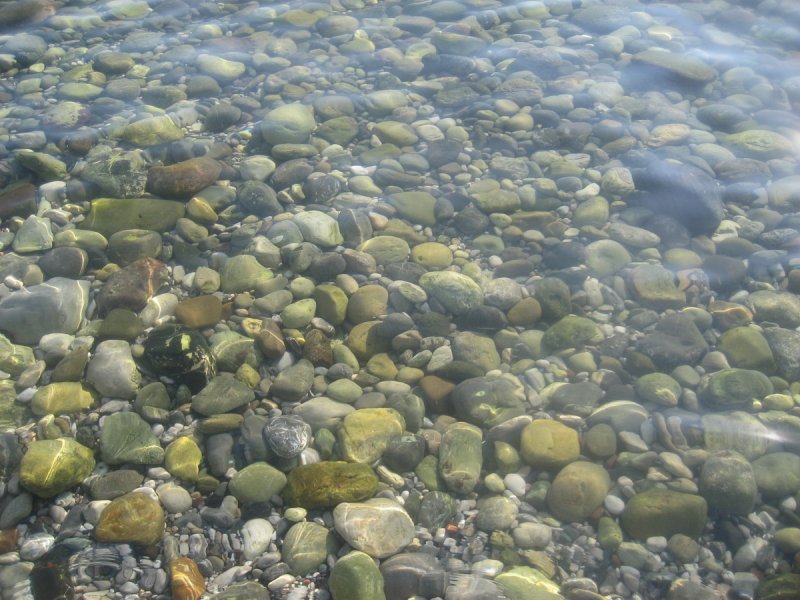 вход в море: на пляже галька разного размера, для ног весьма чувствительно, так что ре я купила специальные тапки (а-ля "серферские" - продаются в кажой лавочке по 15 долларов что детские, что взрослые) - на себе сэкономила, но периодически мучалась с трещинками под пальчиками