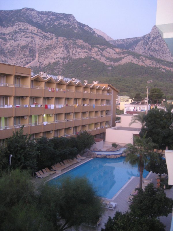 Ну примерное вот так...Да, и еще все таки не нравится мне эта барахольная Турция, где чуть ли за руки не хватают и не тащат в свой магазин "купи, купи, купи!" Цены офигенные,ничего дешевого нет,даже дешевые футболки,которым цена копейки, стоят по 15-20$. Единственное,купила оливкого масла (мне в прошлом году очень понравилось),да кое-что на базаре,который у них по средам приезжает, да персики по доллару за 1кг. покупали, да сок свежевыжатый апельсиновый пили каждый день.