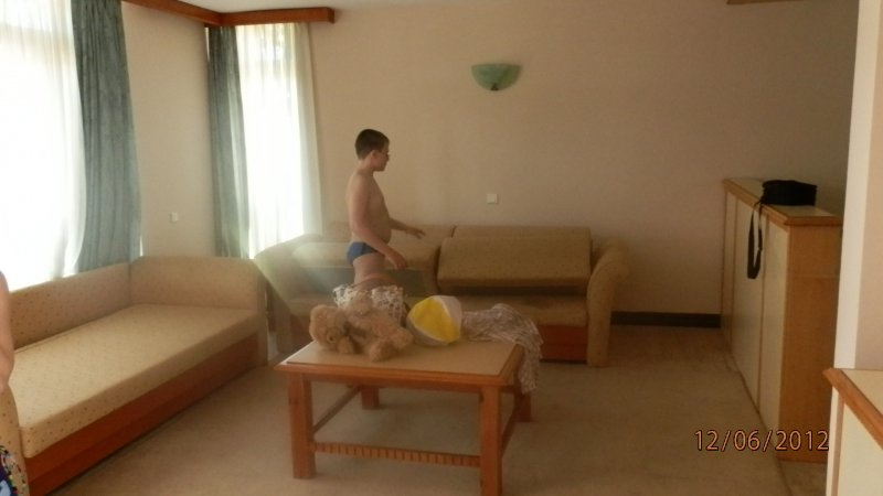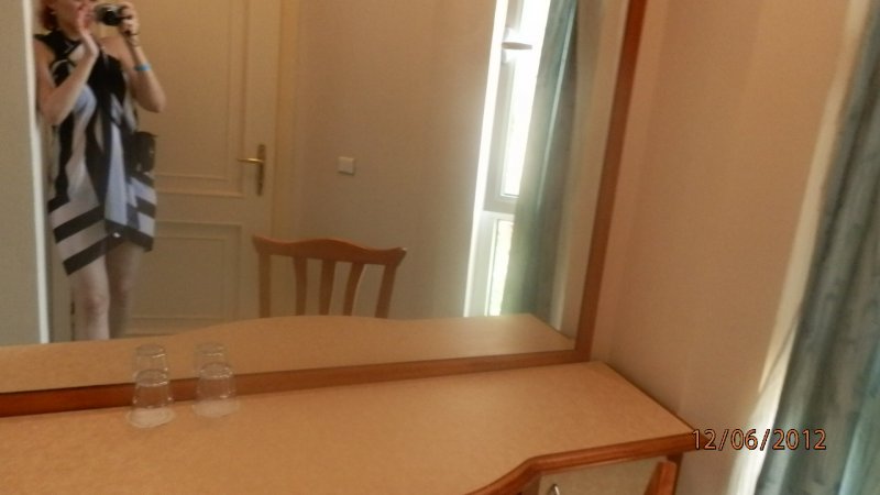 Отель-ну территория это просто сказка. В Турции первый раз, сравнивать не с чем, но гуляя по Текирова и когда завозили туристов по прилету-отлету, могу сказать, что наш отель мне понравился больше. Заселили сразу, так как приехали в отель в 16.00. Муж, не послушав меня, зачем-то вложил в паспорт 20 долл., потом понял, что зря, номера были уже распределены и готовы для нас. Номер нас устроил полностью. Позже выложу фотки. Выбирая номер, я не понимала, почему такой большой по площади номер, как наш-35 кв.м., стоит меньше, чем делюкс( с тем же набором мебели и т.п., но квадратурой 28-30 кв м). Оказалось, просто наши номера расположены метров на 50 дальше. Но по внешнему виду и внутренней обстановке/ремонту, наши номера красивее и уютнее. Да и прогулятся лишние 50 метров для нам не проблема, наоборот на пользу. Если не хочется, то можно у ресепшн попросить, чтоб тебя довезли на машинке(не знаю как они называются).У нас номер был на 2 этаже виллы, вход отдельный и у входа в номер сразу терраса со столиком и стульчиками, сушилка, врезанная в стену. В самом номере французский балкон, который подразумевает стеклянные двери во всю стену, поэтому номер достаточно светлый. В номере был минибар, 2 кровати с ортоматрасами, составленные вместе, 2 раскладушки с ортоматрасами, составленные вместе, стол длинный, во всю стену, стул, столик кргулый, кресло, тумба под обувь, отдельно от входа направо прихожая с пуфом и большим встроенным шкафом-купе, в нем же и сейф(платный 1 евро в сутки). Сразу по приезду в номере стояла кровать-манеж, но дочь наша спала с нами, туда ее садили поиграть и когда чемоданы разбирала/собирала, чтоб не мешала Минибар пополняли по приезду соками, водой, фантой и какой-то минералкой-кроме воды и фанты мы ничего из этого не пили. Потом пополняли только водой 1,5 л. Но проблем особых нет, воду можно всегда было в барах взять. В день приезда обнаружили, что холодильник с минибаром не холодит, вызвали мастера, он пытался нам вдолбить, что это норма для минибара и ушел. Мы позвонили в гест релейшн, сказали, что у нас лекарства и питание для малыша пропадут, так нам сразу все починили.