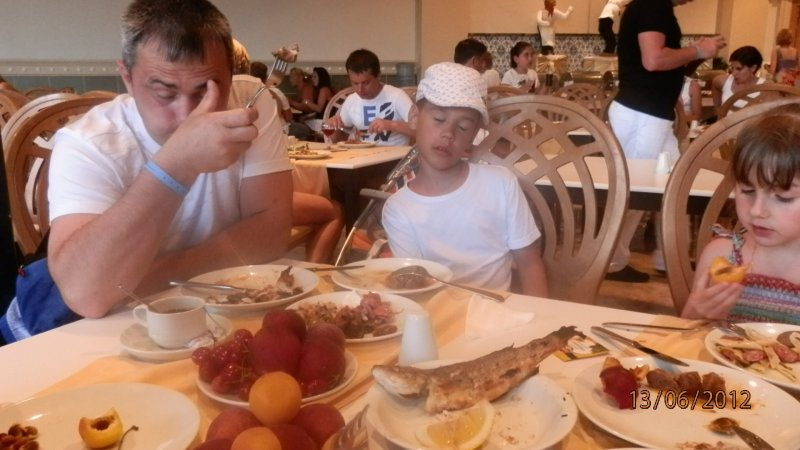 Еда отличная, нам понравилось, другие русские говорили - супа хотим, котлет и тп! А по мне так все отлично, голодными не были ни секунды, поправка +4-5кг на лицо! Напитки тоже включены, а для детей самое главное - мороженное! И еще были арбузы, клубника, апельсины, яблоки и айва (кажется).