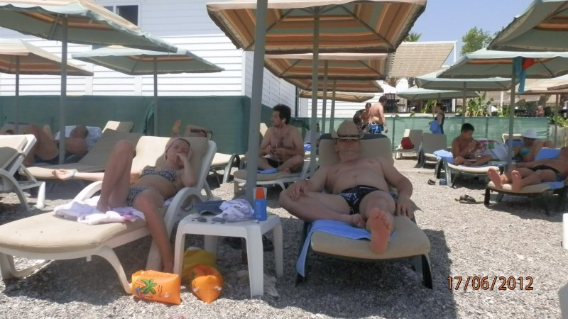 когда жезлонги заняты были(один раз правда всего), мы прям на травке на полотенцах увалились))).А тут мы позируем для фото)))))