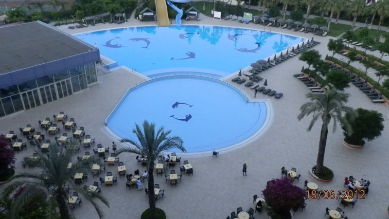 вид на бассейн(с крыши главного отеля фотали-там мы в ресторане были)
