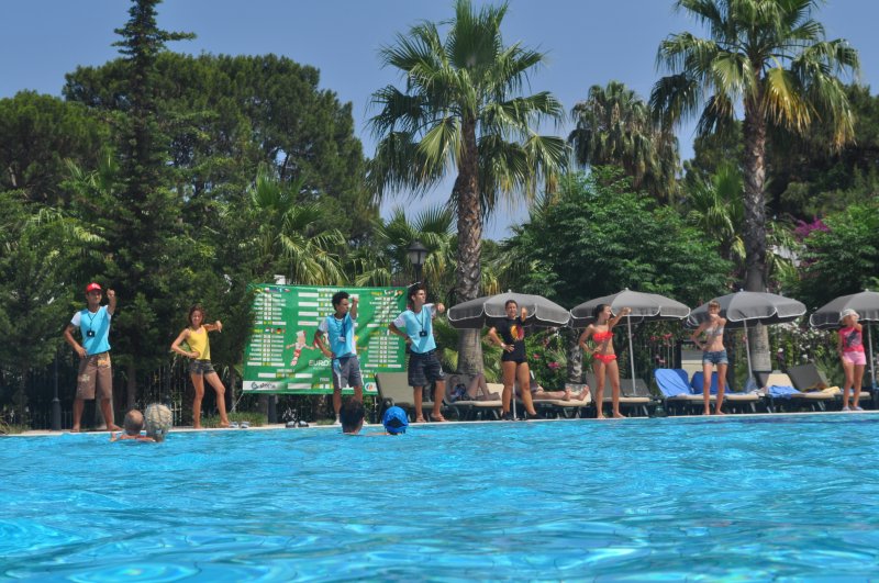 Развлечения вечером: для детей мини-диско, вроде ничего особенного, но наши все без ума были! Потом культурные развлечения, особенно понравились турецкая ночь и бразильский вечер. Потом диско для взрослых, но мы уже спали к тому моменту. И в течение дня всякие развлекаловки, я ходила на аква-аэробику. Мини-клуб правда не очень, оставить там младших я побоялась, тк мои сбегают, а там территория не совсем закрыта, а старшей было скучно.