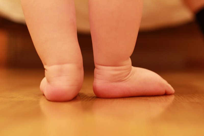 На мой непрофессиональный взгляд, доча заваливает стопу, когда стоит.