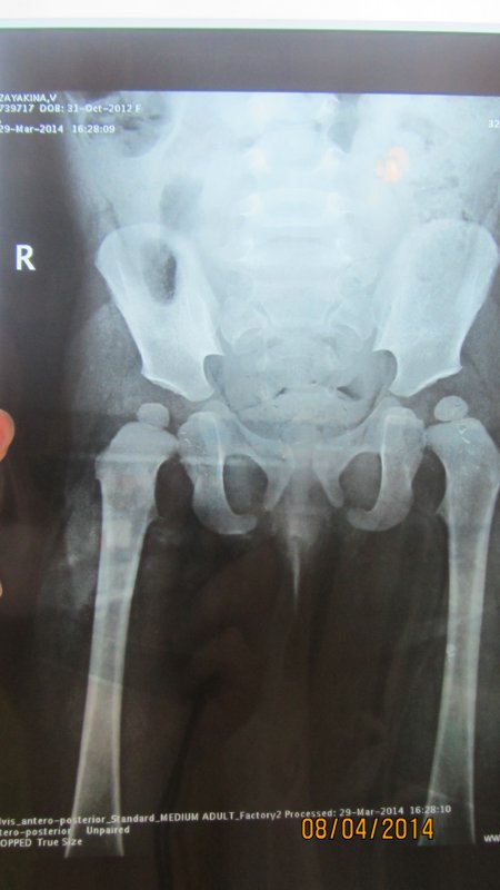 Константин Сергеевич, доброе время суток!!! Очень нужна Ваша консультация!!! Мы просто в отчаянии. Помогите, пожалуйста! Нашей дочки сейчас 1 год и 5 месяцев. В 3 месяца сделали узи т/б суставов- заключение оба сустава-тип Iа. В 6 месяцев пошли на прием к ортопеду: ограничений отведения нет; кожные ягод. и подкол. складки симметр.; длина ног Д=S; ось нижних конечностей правильная, тенденция к вальгусной деформ. стоп.; объем движений в Ш.О.П. полный DS: плосковальгусные стопы. Назначили ЛФК, орторежим, ортообувь с фикс. ГСС. явка в 1 год Мы пришли в 9 месяцев. Нам написали все тоже самое, только добавили мяч и коврик. Явка через пол года. У нас же с 6 месяцев в т/б суставах часто был слышен хруст (щелчек), когда я меняла памперс , однако массажист говорил, что ничего не хрустит (массаж мы делали 5 раз)(массажист у нас врач-хирург) На этом дело и было бы закончено НО!! Хруст все же продолжался. Мы сделали узи т/б суставов в 1,1месяц в НИИТО заключение: признаки задержки темпов оссификации ядер, оба сустава- тип 1а. Затем отправились на консультацию к ортопеду в НИИТО. назначили: ЛФК, массаж, орто обувь, электрофорез, парафин, плавание, Д3 в возростной дозировке, ходьба по коврику, мультитабс малыш кальций 1/4 т. творог, мясо и ренгенография т/б в прямой проекции через 3 месяца. Сходили еще к одному ортопеду, нам сказали ренген делать не обязательно у вас нет дисплазии. Однако мы всеже сделали ренген в НИИТО в 1,5 месяцев и результат по нему такой:- ядра окостенения головок бедренных костей расположены в проекции ацетабулярной впадины, симметричны, децентрированы; - ацетабулярный угол D=28 S=25; -проекционный ШДУ D=156 S=143; - угол наклона плоскости входа во впадину D=37 S=39; - угол Виберга D= 7 S=11; - линии Шентона изломана слева, линии Кальве не нарушены; - симптом Омбреданна отрицательный с обеих сторон. Заключение: Двусторонняя дисплазия тазобедренных сочленений. Помогите, пожалуйста! Что нам делать? Как к Вам можно попасть на прием?? Очень хочется услышать Ваше мнение!