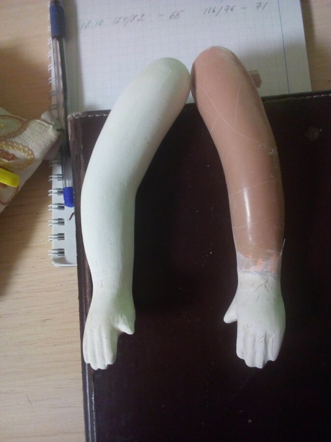 Сегодня высохли вылепленные ручки, начинаю шлифовать.