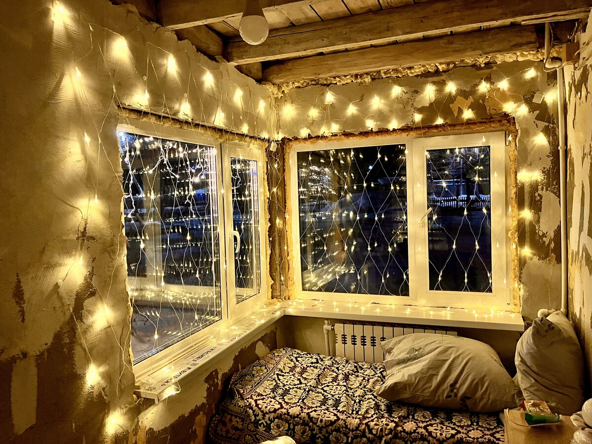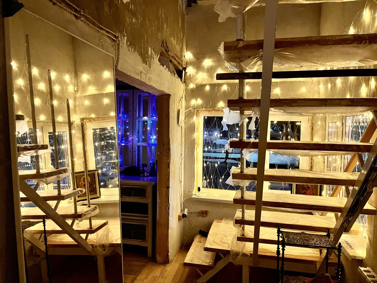 И вот повесили гирлянды на втором этаже. Завтра сфотографирую дом с улицы, а пока внутренний интерьер