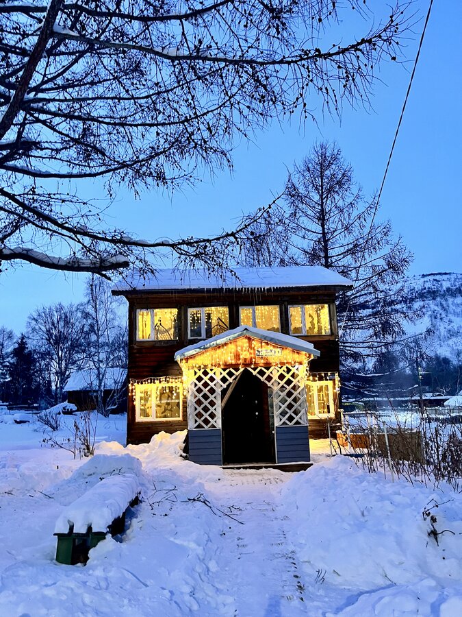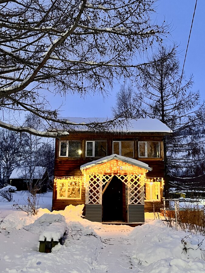 Вот и добрались мы до домика. Пока собираемся с мыслями о том, в каком порядке браться за огромную кучу работы. И украшаем Домик к Новому году.