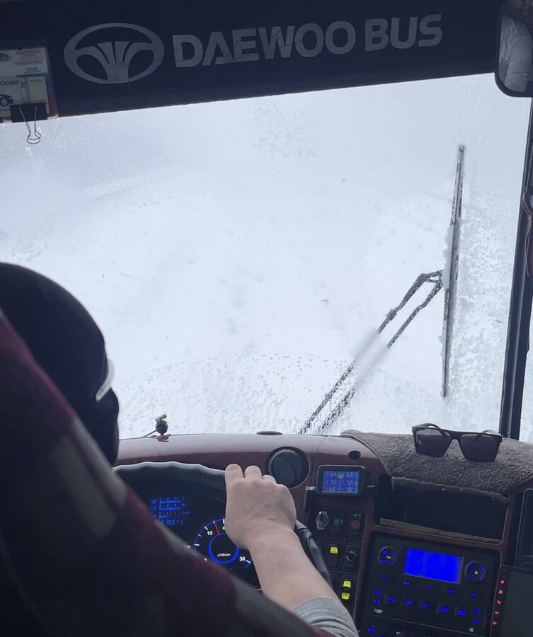 Но каково же было моё удивление, когда я открыла глаза на подъезде к остановке! Всего за 3 часа езды мир преобразился: солнце, сияющее на лазурном небе, переливалось на белоснежных сугробах миллионами яркий брызг. На горизонте открылась стройная гряда гор, гостеприимно зовущих в дальний край. И от той дорожной хандры не осталось и следа :in_love: