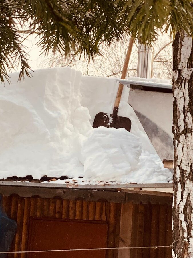 Сегодня ездили на дачу, скидывали снег с крыши веранды,с крылечка, с дровника,у него крыша аж прогнулась под тяжестью.Еле докопались до дома.Просто урылись.