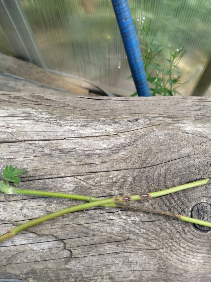 Визитной карточкой антракноза являются пятнышки на черешках, цветоносах и усах. Начинается с маленького пятнышка, постепенно разрастаясь зараза охватывает их (как бы окольцовывает) ,питание прекращается и листик, усик, цветонос засыхают, посколько это грибок ,он может жить и в земле, поэтому поражается и корневая, ягодки становятся дефективными и кустик может погибнуть, а зараза перекинуться на всю плантацию. Разносят эту заразу все, что угодно :от ветра до ваших рук