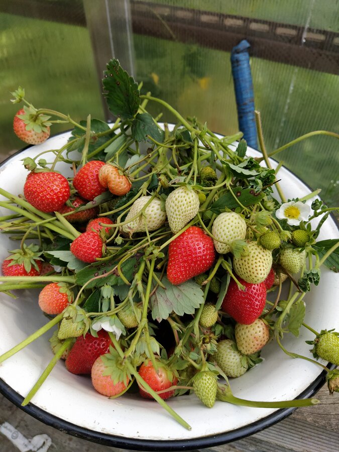 Вообще белая ягодка успела бы доспеть, но я принесла с клубникой фриго антракноз.