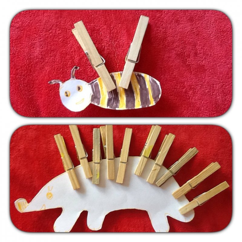 2. Либо говорим, что нужно добавить фигурке, либо предлагаем догадаться, либо сначала показываем контур, крепим прищепки, дорисовываем, радуемся, что получилось.