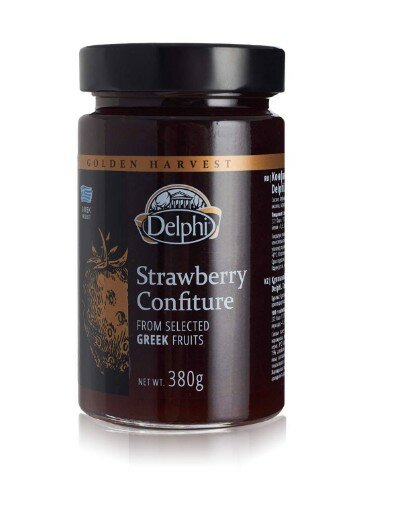 Прекрасный конфитюр, богатый кусочками клубники без консервантов, красителей и добавок. Он производится в Северной Греции по аутентичным домашним рецептам.