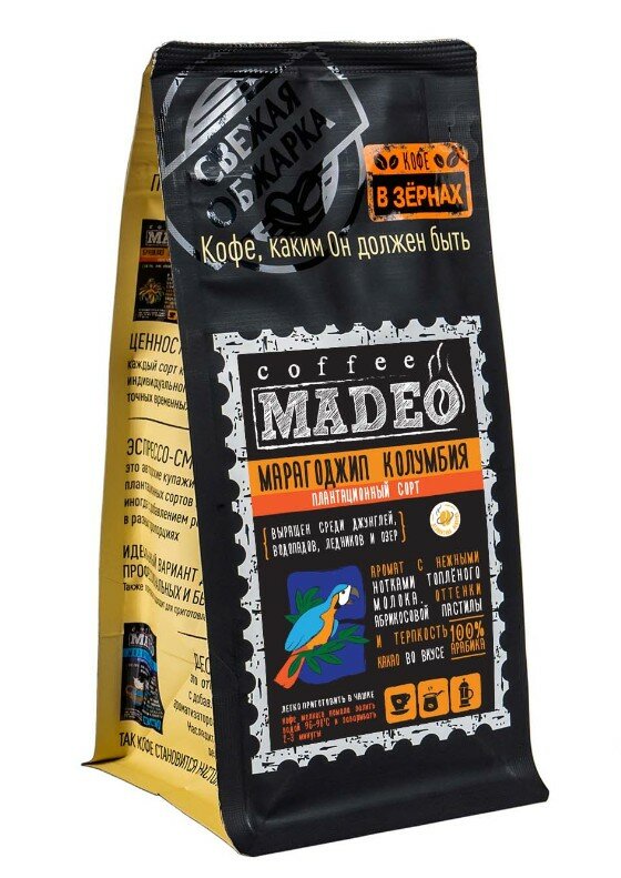 Марагоджип Колумбия кофе зерно 200гр свободно 1 шт 698 руб/шт один из четырёх сортов особой разновидности марагоджип. Как и другие сорта этого семейства он поизрастает в особых климатических условиях, нуждается в более тщательном ухаживании на всех этапах роста. Так как высота произрастания кофе семейства марагоджип чаще всего превышает 2000 метров над уровнем моря, сбор производится только вручную, а вода для влажной обработки берется из горных ручьёв кристальной чистоты. В целом выращивание и сбор марагоджипов требуют немалого труда и ответственности на всех этапах. Благодаря этому появляется изысканный, чаще всего мягкий вкус с фруктово-цветочными оттенками. Вкус арабики марагоджип занимает особое место в кофейной карте всего мира.Напиток, приготовленный из этого сорта кофе, обладает полным насыщенным вкусом, гармоничным ароматом с оттенками топленого молока и густым плотным вкусом с легкой горчинкой. Оттенки абрикосовой пастилы и терпкость какао во вкусе.