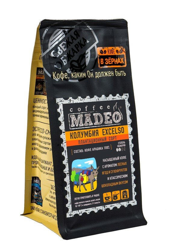 Колумбия Exelso кофе зерно 200гр свободно 3 шт 394 руб/шт Климатические условия в Колумбии идеальны для выращивания кофе: этот сорт произрастает на высоте от 1000 до 1900 метров над уровнем моря. Уила — один из традиционных кофейных департаментов Колумбии на востоке страны. Множество горных склонов, большая высота произрастания в сочетании с почвой, насыщенной осадочными и вулканическими породами, делают кофе из этого региона таким ярким и узнаваемым. В чашке - насыщенный кофе с ароматом лесных ягод и сухофруктов и классическим шоколадным вкусом. Отличный выбор для эспрессо.