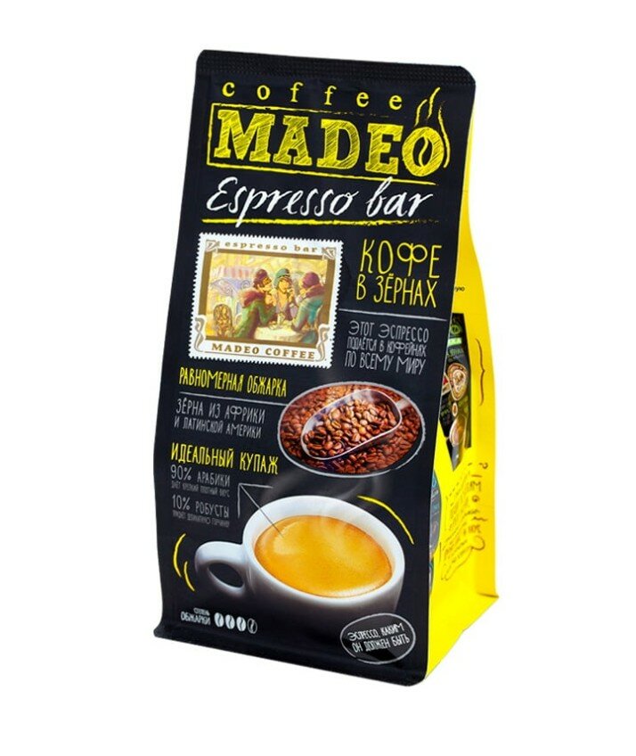 Зерновой кофе для профессиональных и бытовых кофемашин. Так же отлично подойдёт для заваривания в турке или френч-прессе. Небольшое содержание робусты (10 процентов). С этим кофе вас ожидает терпкий вкус настоящего эспрессо. Зёрна традиционной тёмной обжарки. Этот сорт кофе отлично подходит для заваривания в чашке. Именно таким способом его готовят в фирменных поездах «Сапсан», следующих по маршруту Москва — Санкт-Петербург, а так же на популярных направлениях в поездах «Стриж» и «Ласточка». Попробуйте чашечку кофе Espresso Bar, если желаете насладиться настоящим кофе в пути.