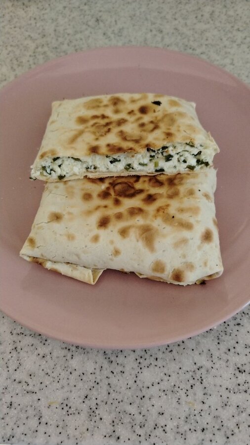 Кутабы из лаваша с творогом, мягким сыром и зеленью.