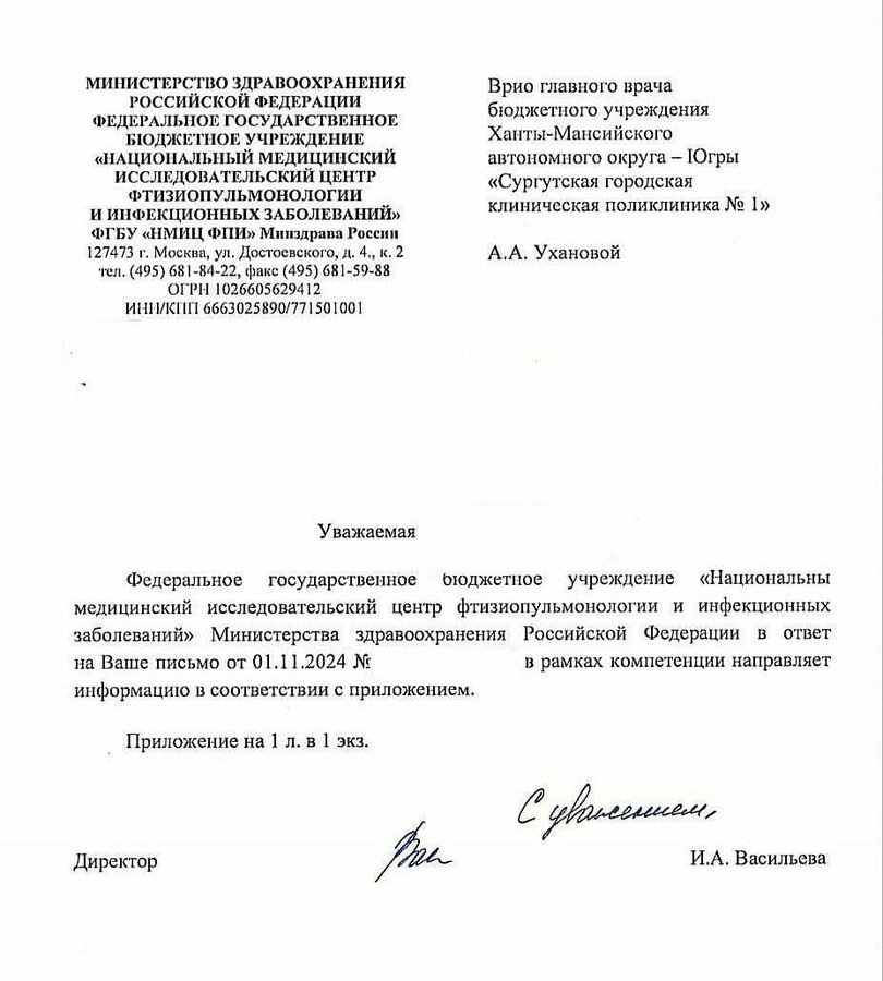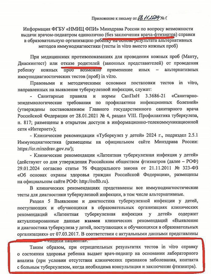 И ответ Минздрава НСО о том, что если есть отрицательный Т-спот, то заключение фтизиатра не требуется. А самое главное, что если у ребенка есть противопоказания, то ему обязаны сделать дорогостоящий Т-Спот БЕСПЛАТНО!