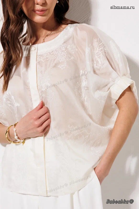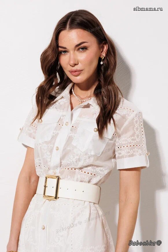 Блузка прямого силуэта из полупрозрачной ткани с вышивкой. Горловина округлая, по центру супатная( потайная)застежка на петли и пуговицы. Рукав цельнокроеный, но низу декоративные складки. Обращаем ваше внимание, что фурнитура может отличаться от фото. Ремень в комплект НЕ входит.