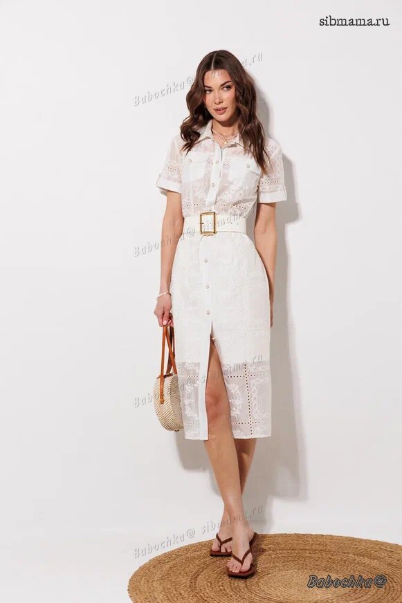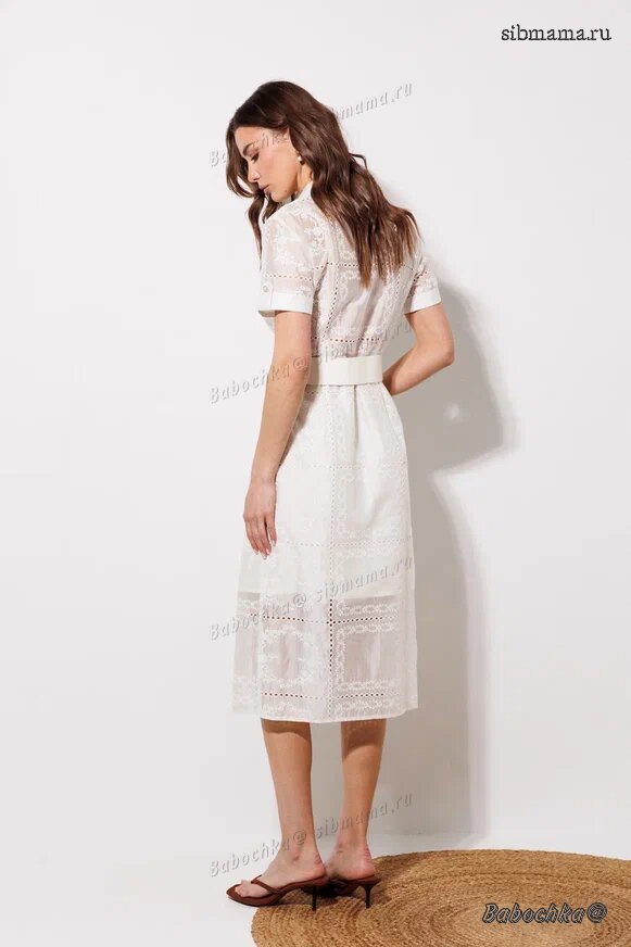 Платье полуприлегающего силуэта из полупрозрачной ткани с вышивкой. Воротник стояче-отложной с застежкой по центру на петли и пуговицы. Рукав втачной, по низу притачной манжет с декоративной патой. Платье отрезное по линии талии. По переду и спинке талиевые вытачки. В верхней части переда кокетка и накладной карман с клапаном. Платье частично на подкладке. В комплект входит ремень. Обращаем ваше внимание, что фурнитура может отличаться от фото.
