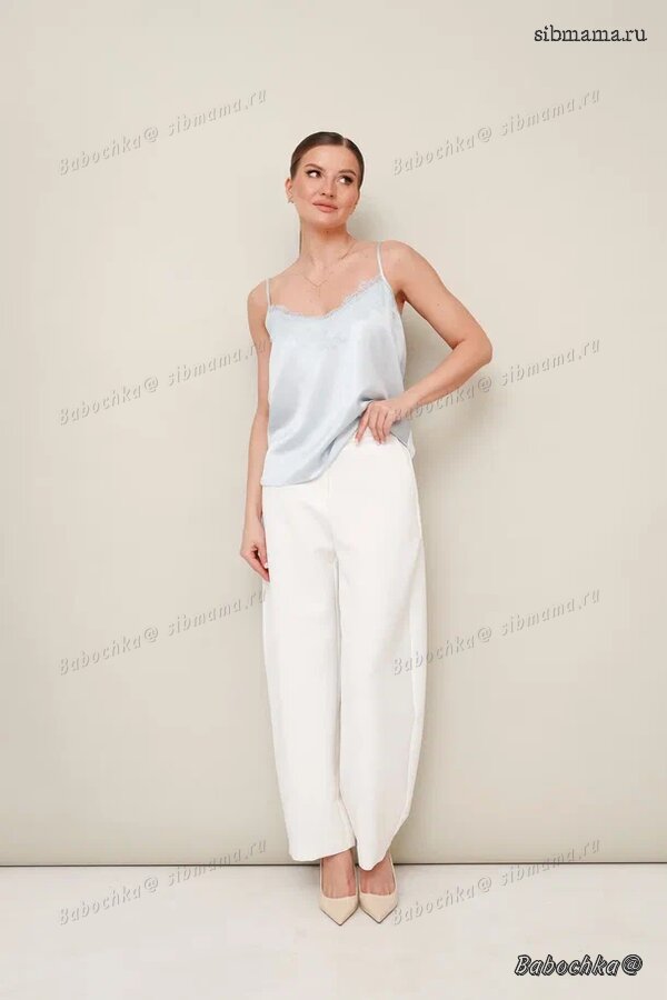 Элегантный топ прямого силуэта в бельевом стиле. Горловина с V-образным вырезом. Топ на бретельках с регуляторами. Верхний срез переда и спинки декорированы французским кружевом. Топ создает основу для вечерних и повседневных образов в вашем гардеробе.