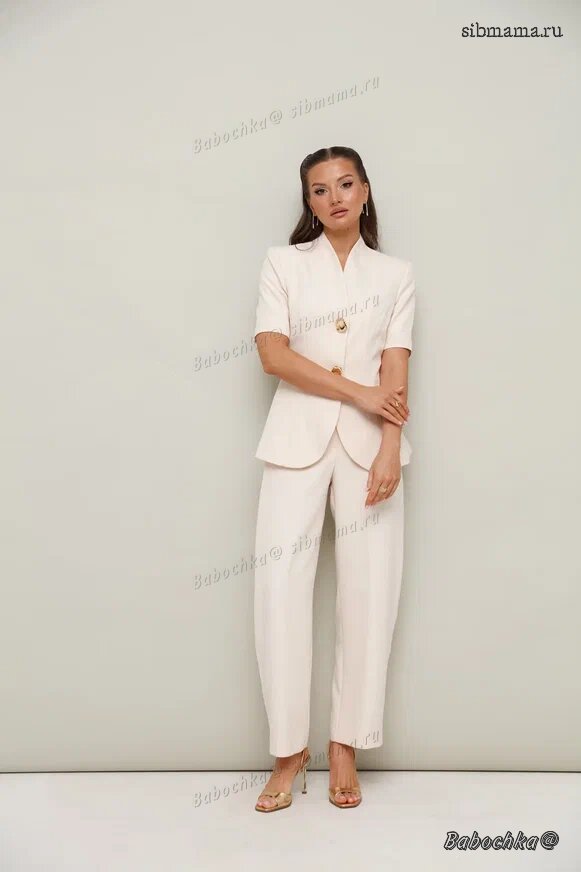 "Стильный 2-предметный комплект, состоящий из жакета и брюк, выполненный из костюмной ткани.