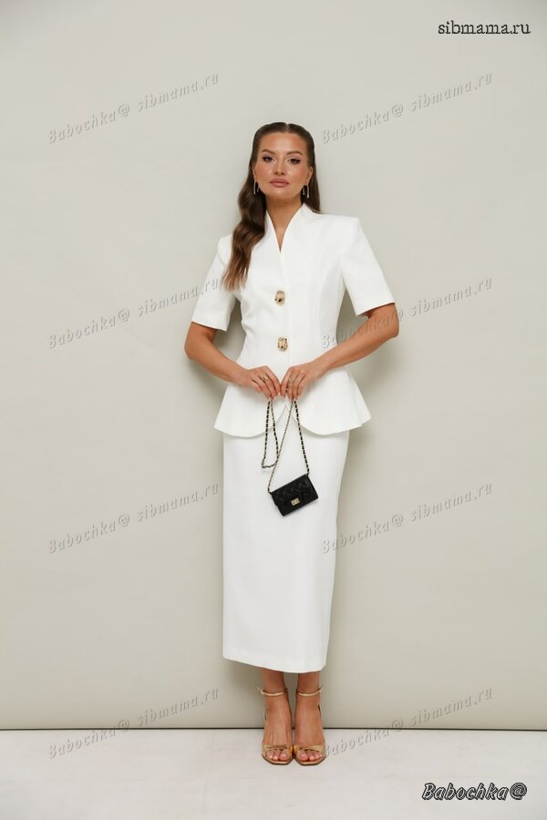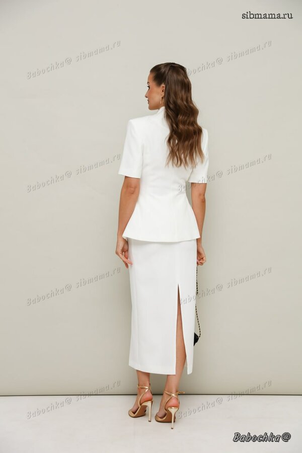 "Стильный 2-предметный комплект, состоящий из жакета и юбки, выполненный из костюмной ткани.