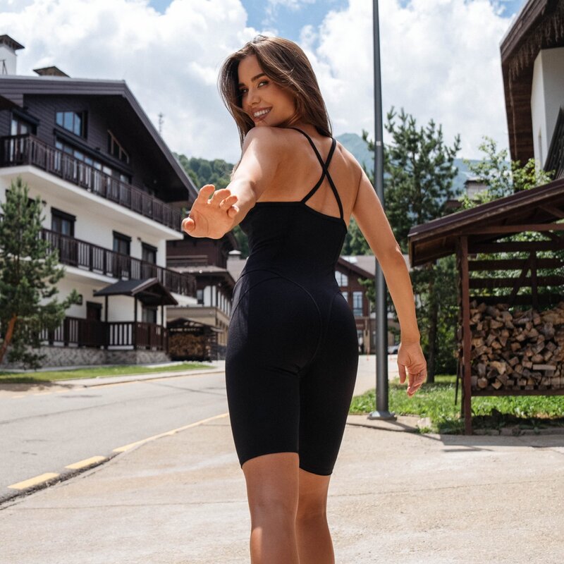 Спинка отрезная по линии талии, нижняя часть спинки со сборкой по шву притачивания. Верхняя часть спинки с таллиевыми вытачками. Вырез горловины V-образной формы, в шов обтачивания которого, вставлены отделочные детали с регуляторами.