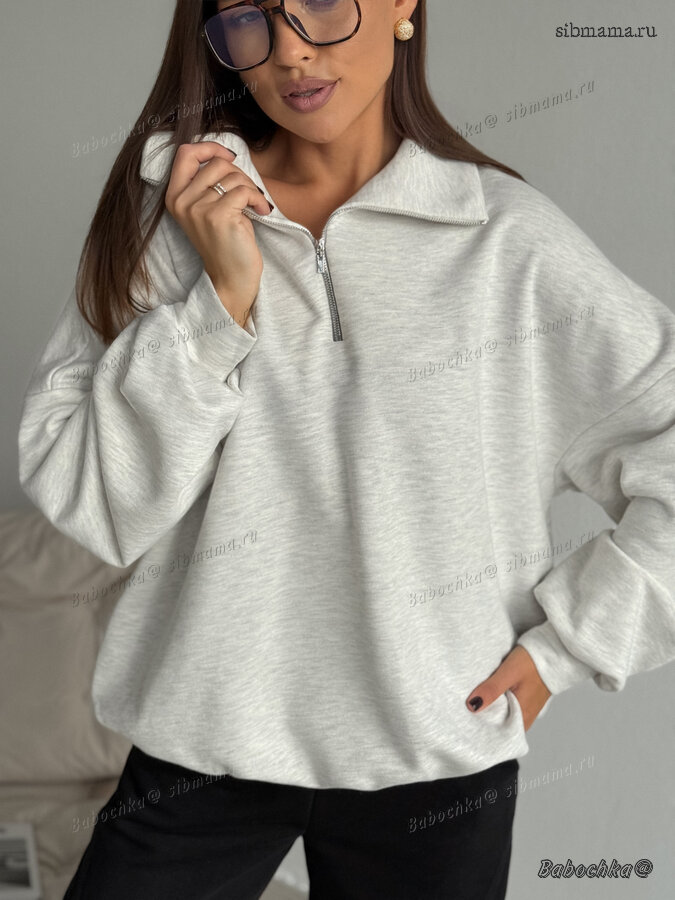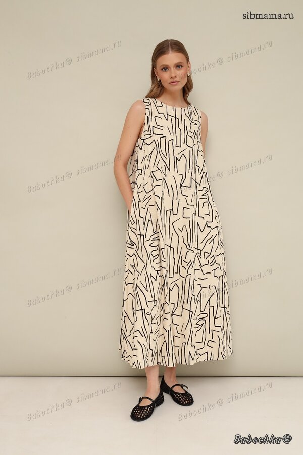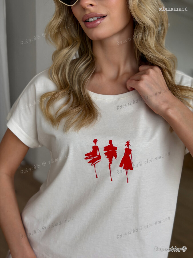 Блуза прямого силуэта, линия плечевого шва спущена. Перед без конструктивных особенностей, с печатью на груди. Спинка без конструктивных особенностей. Вырез горловины округлой формы, обработан притачной планкой.