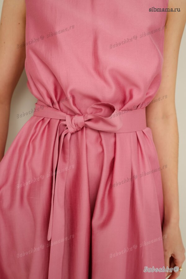 Платье с поясом, застегивающимся на пряжку, выполненный из основной ткани.