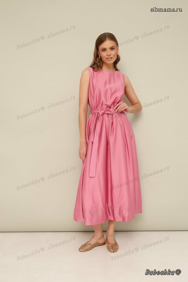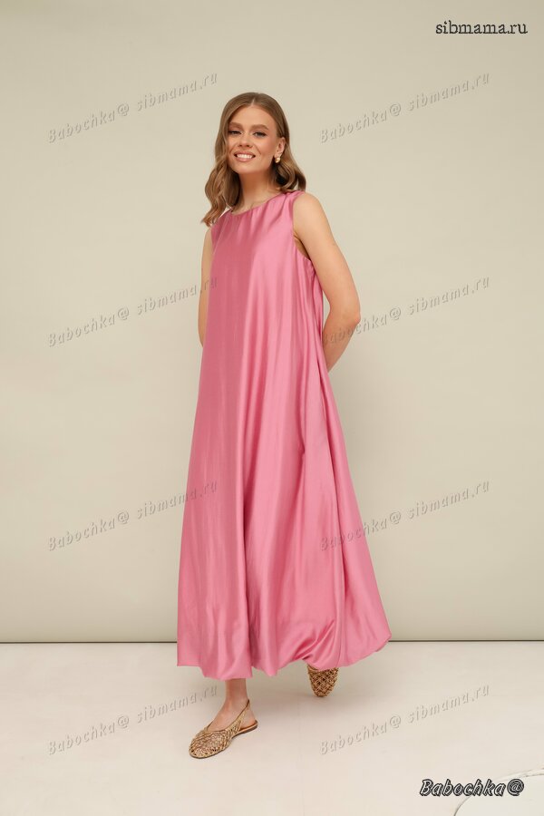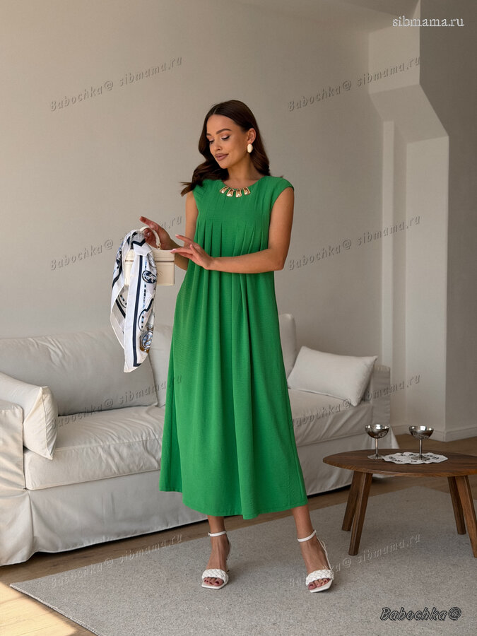 "Платье женское, свободного А-слуэта, длинной до середины икры. Линия плечевого шва немного спущена.