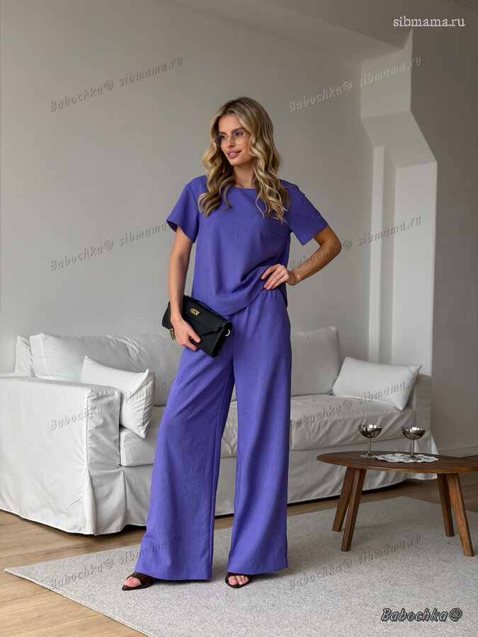 "Костюм женский двух-предметный, состоящий из брюк и блузы.
