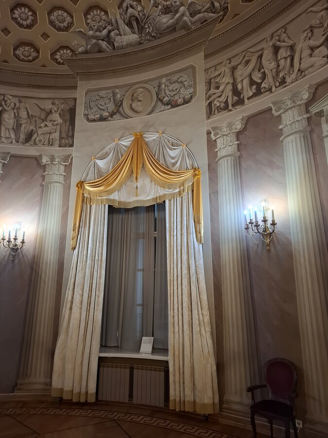 Побывав с экскурсией в Усадьбе Люблино, я решила вернуться сюда, и зайти в сам главный дом, тем более архитектура его необычна-здание в форме креста, вписанного в круг. Случай как раз подвернулся на этих выходных-концерт в усадьбе-полный восторг, а еще очень красивые интерьеры, а аккустика какая! Особенно когда начинали петь из зала, в форме круга, звучание потрясающее!