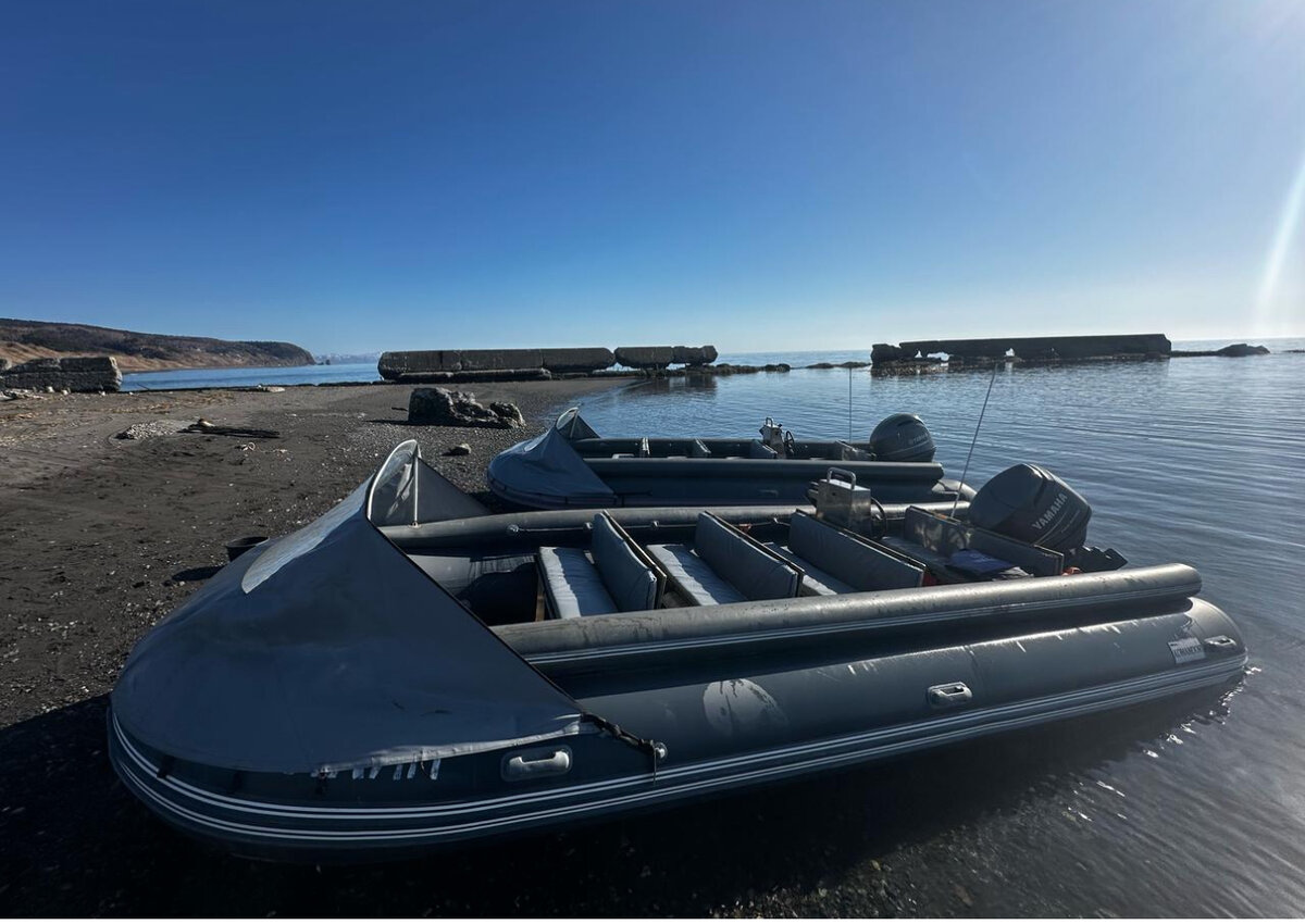 Приехали мы к месту базирования, откуда начался маршрут и куда мы потом возвращались обедать. У слову сказать, прекрасный был обед с ухой из красной рыбы и всякими салатами из морской капусты и морского винограда и более привычных вещей, для этого ставился большой шатер, столы и стулья. Все в комфорте.