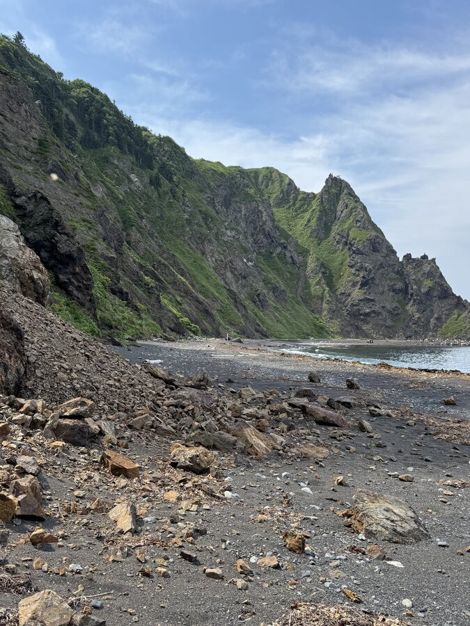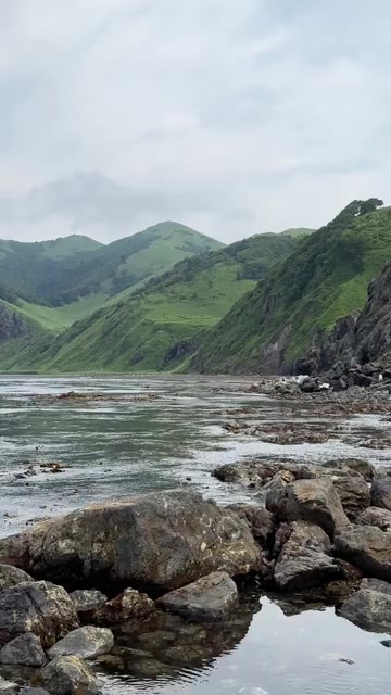 Вода там просто невероятно чистая как горная река, и холодная такая же Охотское море в этот день было 13,5-14 градусов с этой стороны))) и это оно уже типа потеплело))) впрочем, нас это не останавливало от купания хотя первое погружение в воду даже не состоялось сразу, надо было привыкнуть. В ногах сначала боль от холода))) потом выходишь на воздух, и тело горит прям полыхает жаром. «Плавали» мы по итогу раз 5-6, и под конец муж даже осмелился нырнуть с головой. Правда, он в воде все равно не выдерживал даже минуты, а я могла прям плыть до 2х минут