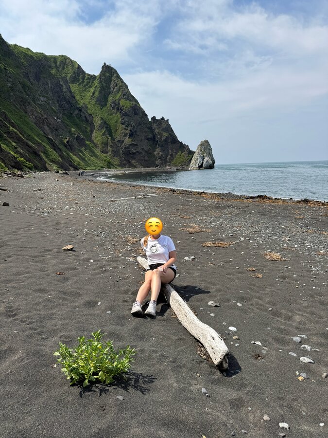 Вчера были на песчаном пляже в Таранае, там, где река впадает в море, замерили воду: +22, но по ощущениям было около +24), комфортно). В реке вода была еще теплее). Машин вдоль берега - нескончаемо, многие с палатками на ночь. Ночью народ разжег костры: было какое-то ощущение тепла и уюта от этой нескончаемой цепочки огней вдоль всего побережья. Запах шашлыков, шум моря, звезды, приглушенный свет в палатках - одним словом, романтика... Дети поймали несколько гребешков и нашли "слезу Карафуто" - черепок старинной японской посуды.