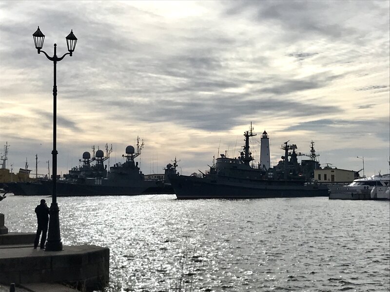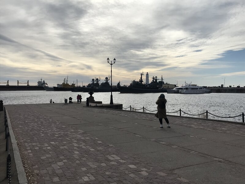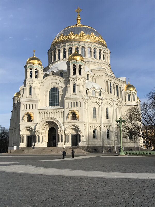 Четвёртый день прогноз оправдывается - в Петербурге стоит солнечна погода, правда, очень ветрено, что особенно чувствуется возле воды. Вчера были в Кронштадте. Ехали туда на автобусе номер 101 от метро Старая Деревня (удобно, что едешь от конечной до конечной остановки). Я заранее заказывала индивидуальную экскурсию. Экскурсия началась от Часовни в честь Тихвинской иконы божьей матери и закончилась на Якорной площади. Конечно же есть памятник Петру 1 - основателю города. Потрясающие виды на военную гавань Экскурсия длилась 2,5 часа и мы, конечно, немного подмёрзли - с залива дул достаточно сильный ветер, экскурсовод предложила зайти в сувенирный магазин, там стоит автомат с кофе, также можно было посетить туалет. Главная достопримечательность Кронштадта - величественный и прекрасный Морской собор. :in_love: На крыльце храма топталась оооочень наглая чайка, которая спокойно позировала для фото и не постеснялась съесть прямо с руки :haha: две шоколадные конфеты :shock: , больше у нас предложить ей было нечего ))