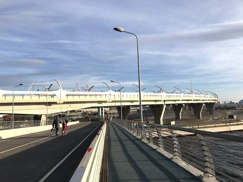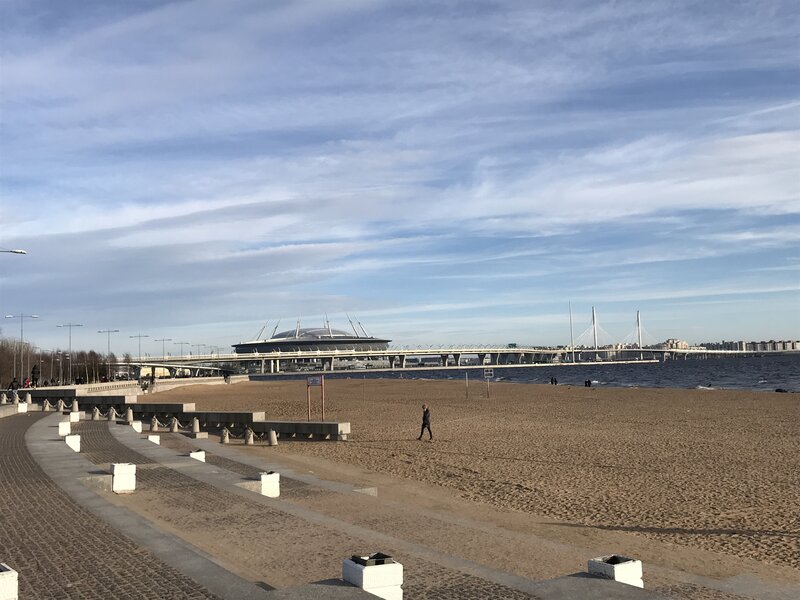 Не могу не поделиться :-) - вчера ещё прогулялись в парке 300-летия Санкт-Петербурга. Вот такие там пейзажи :in_love: Башня Лахта-Центра Был достаточно приличный ветер, море очень сильно волновалось Потом по Яхтенному мосту пошли к Газпром-Арене. На мосту был уже такой сильнейший ветер, что просто сбивал с ног :o При этом, мост идёт под наклоном, а мы шли вверх. Стадион,конечно, вблизи впечатляет своими громадными размерами Ещё понравилась новенькая станция метро «Беговая», открыта в 2018 году к чемпионату мира по футболу.
