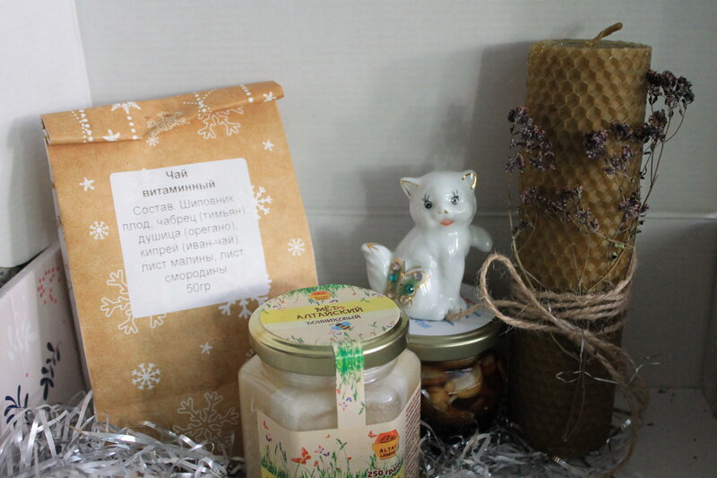 Большое спасибо Ёяя за новогодний подарок! Такой волшебный запах при открывании коробки - мед, душица, просто великолепно! Я поняла, что это от свечки, кстати, ни разу такую не видела, она как бы свернута трубочкой.