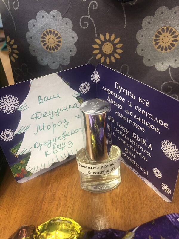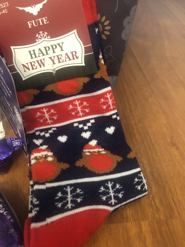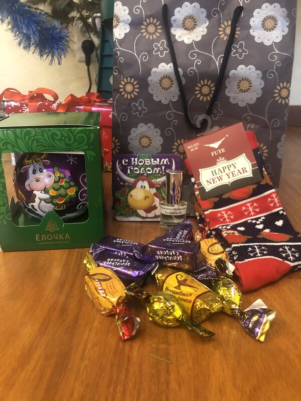 Конфеты сразу же «подрезал» сынуля, оказывается, он очень любит Левушку, я и не догадывалась :oops: Носки шикарные, у меня не было с новогодней тематикой, а сейчас в холода буду носить дома и поднимать всем настроение :D Ну а гвоздем посылки я считаю туалетную водичку, которая пахнет цитрусом с ноткой свежести, просто прелесть :give_heart: люблю разнообразие в ароматической коллекции.