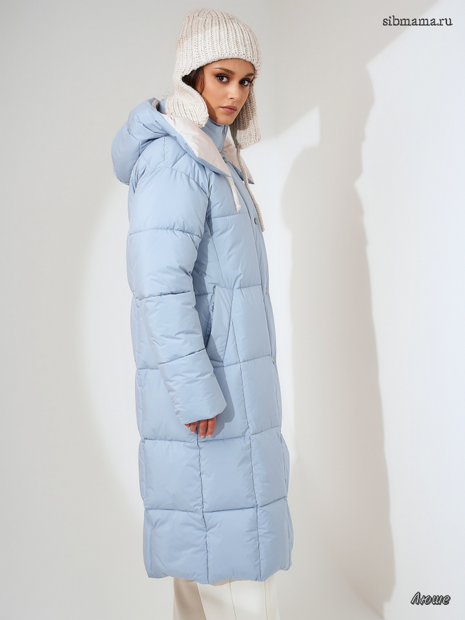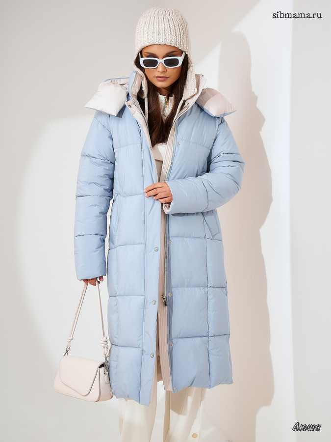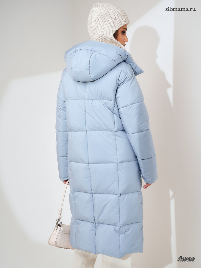 Пуховик женский серо-голубой