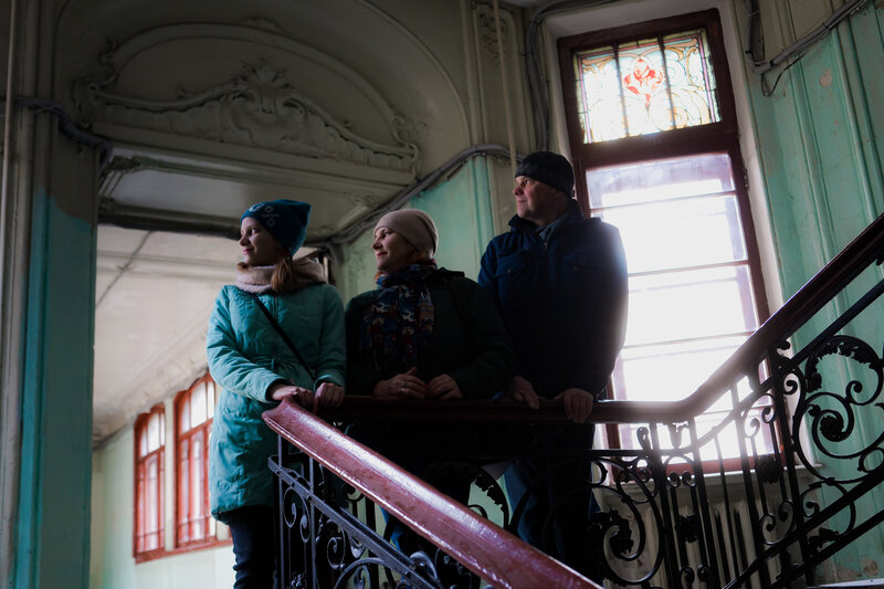 Парадная, конечно, мягко говоря, требует ремонта, но зато такое состояние как бы окунает в то время